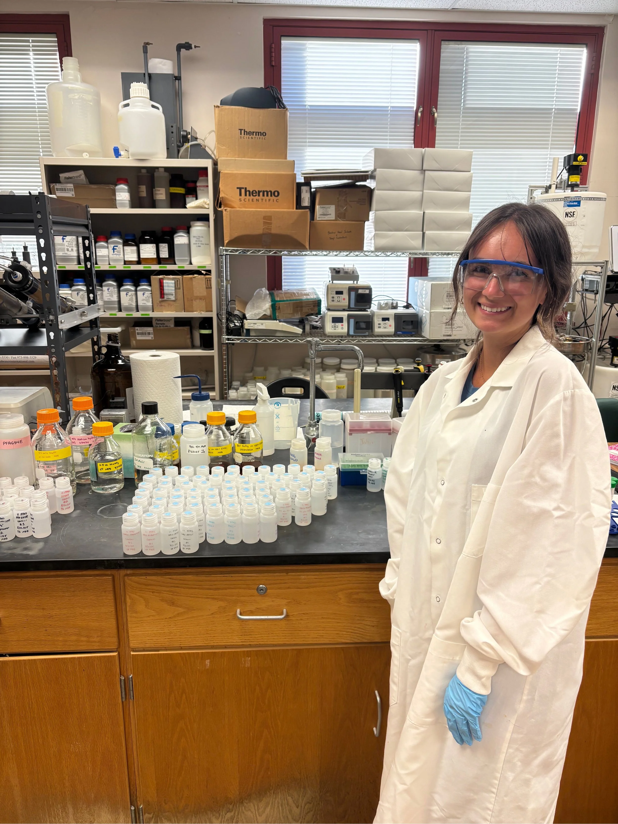 “Hello! My name is Emily Piazza, and I am an undergraduate student studying Chemical Engineering. For the past 3 months, I have been fortunate to have the opportunity to conduct research in Dr. Blaney’s lab. It has been an honor to work alongside great people and learn so much about the fundamentals of environmental engineering this summer.